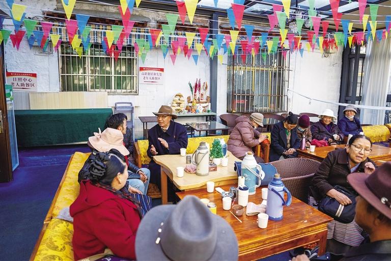 1956年出生的赤來,是策門林老年日間照料中心的常客,他和老伴居住在拉薩市城關(guān)區(qū)八朗學(xué)社區(qū),已在拉薩生活了30多年。回憶起過去的歲月,赤來感慨萬千:“聽我爺爺奶奶說,以前的生活真的很苦,我們住在帳篷里,靠放牧為生,經(jīng)常挨餓受凍?,F(xiàn)在黨和政府的政策好,我們的生活發(fā)生了翻天覆地的變化?!闭勂鹑缃竦纳钭兓?,赤來認為最直觀、最明顯的就是住房條件的改善,“我的老家在那曲,那里海拔高、氣候寒冷,到了冬天,寒風會灌進帳篷,大家凍得直打哆嗦。那時候,能有個不漏風的帳篷住就不錯了,哪里敢奢望現(xiàn)在這樣的生活。”