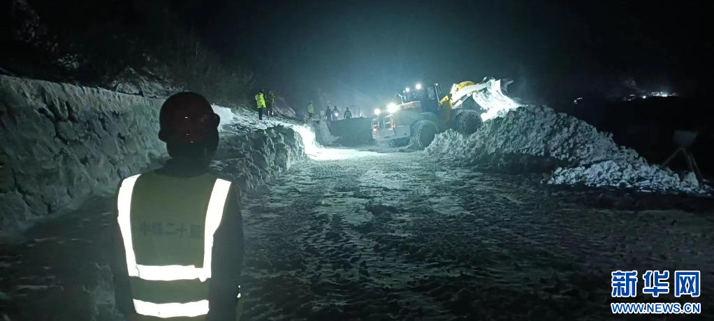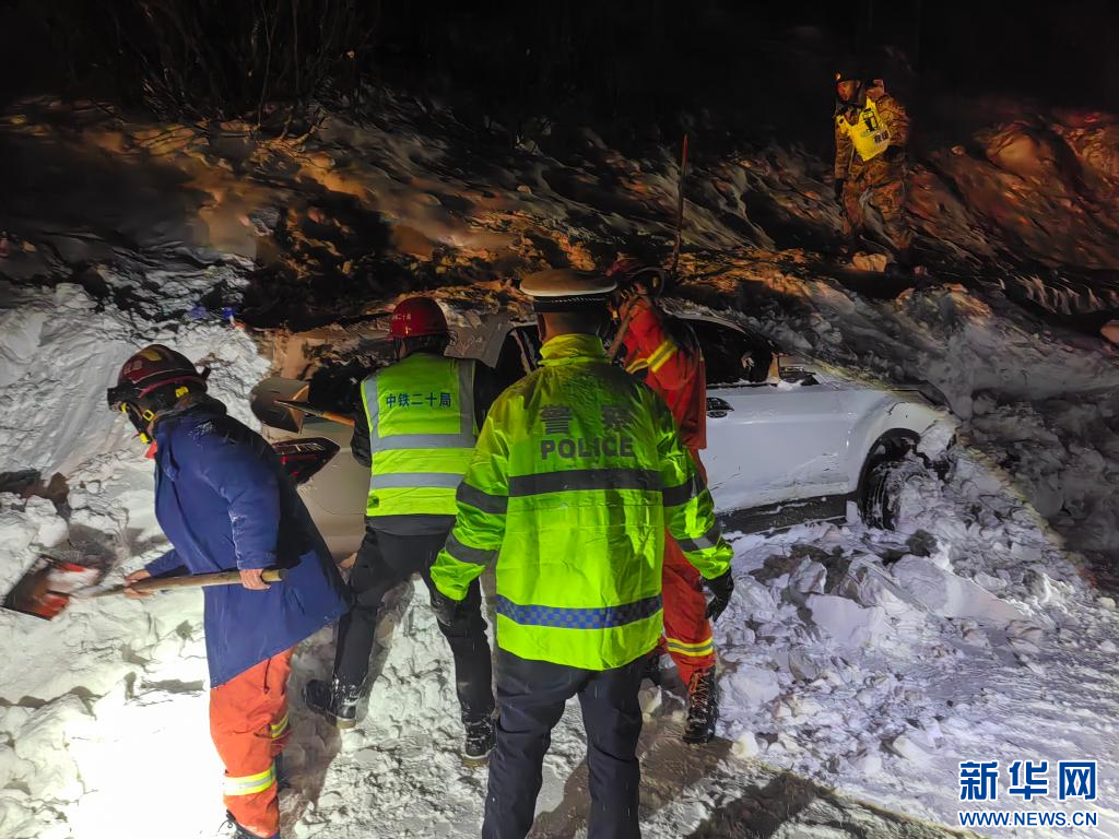 此時,積雪最深處超過3米,寒風刺骨,救援刻不容緩。20時15分,距離事發(fā)地200米的國道318線(然烏段)整治改建工程特長隧道——然烏隧道進口處,正在施工的中鐵二十局建設者最先發(fā)現(xiàn)災情。8名建設者便攜帶救援繩、鐵鍬、防寒服等物資登車,與1臺重型裝載機趕到現(xiàn)場。與此同時,八宿縣消防救援、公安及武警官兵及時趕到現(xiàn)場緊急馳援。在零下10攝氏度左右的嚴寒中,各方救援力量頂風冒雪,爭分奪秒展開了一場與時間賽跑的救援。