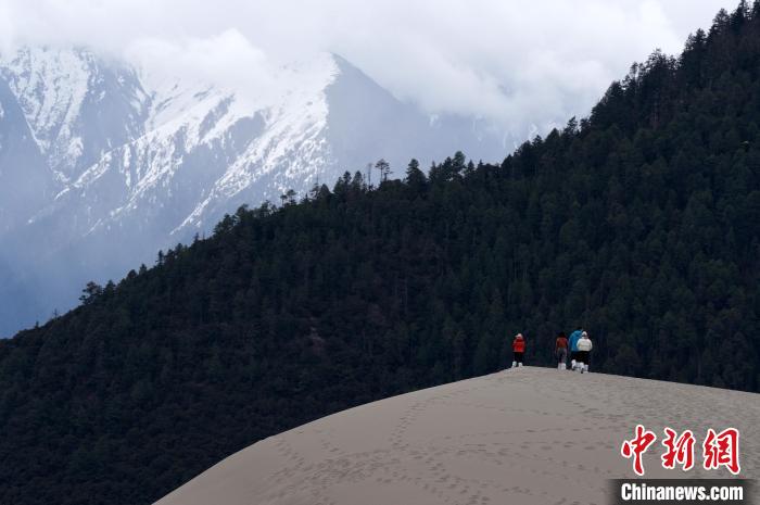 4月4日,游客在西藏米林市丹娘佛掌沙丘景點觀景。當日是清明假期第一天,眾多游客在該地游玩,樂享美好春光。丹娘佛掌沙丘位于米林市丹娘鄉(xiāng),因沙丘倒影在雅魯藏布江中形成雙手合十的形狀,故被譽為佛掌沙丘。中新社記者 李林 攝