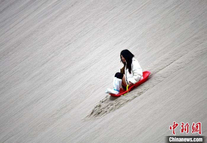 4月4日,游客在西藏米林市丹娘佛掌沙丘景點體驗滑沙。當日是清明假期第一天,眾多游客在該地游玩,樂享美好春光。丹娘佛掌沙丘位于米林市丹娘鄉(xiāng),因沙丘倒影在雅魯藏布江中形成雙手合十的形狀,故被譽為佛掌沙丘。中新社記者 李林 攝