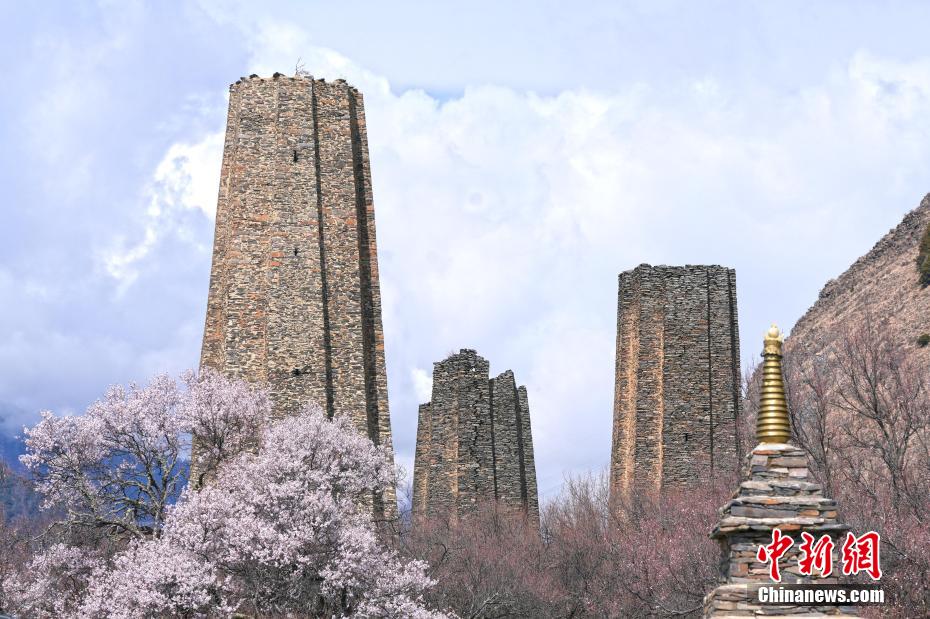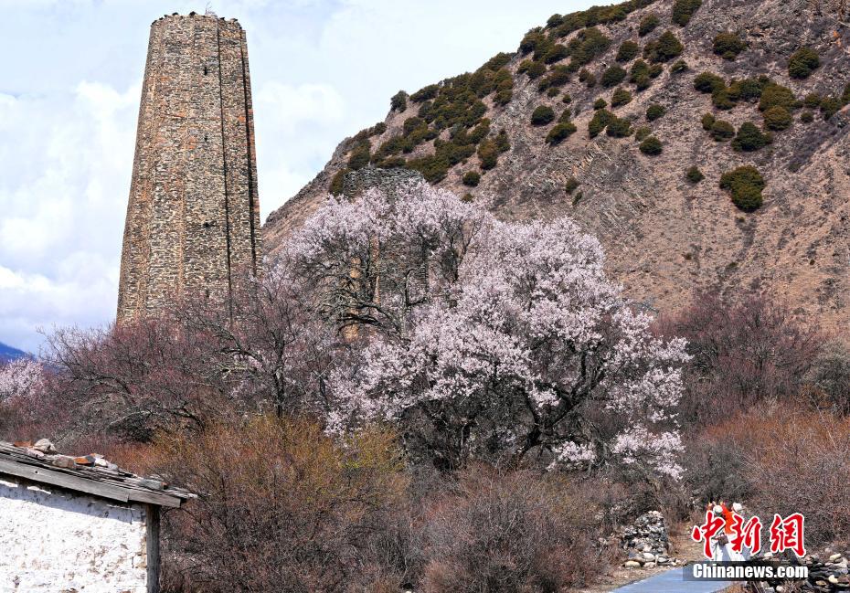 秀巴古堡位于西藏林芝市工布江達縣,是古代的軍事設施,距今已有1600多年的歷史。時下,古堡之下遍布的桃花競相綻放,粉白桃花點綴著滄桑古堡,景色壯麗。圖為4月5日,秀巴古堡群下桃花綻放。中新社記者 李林 攝