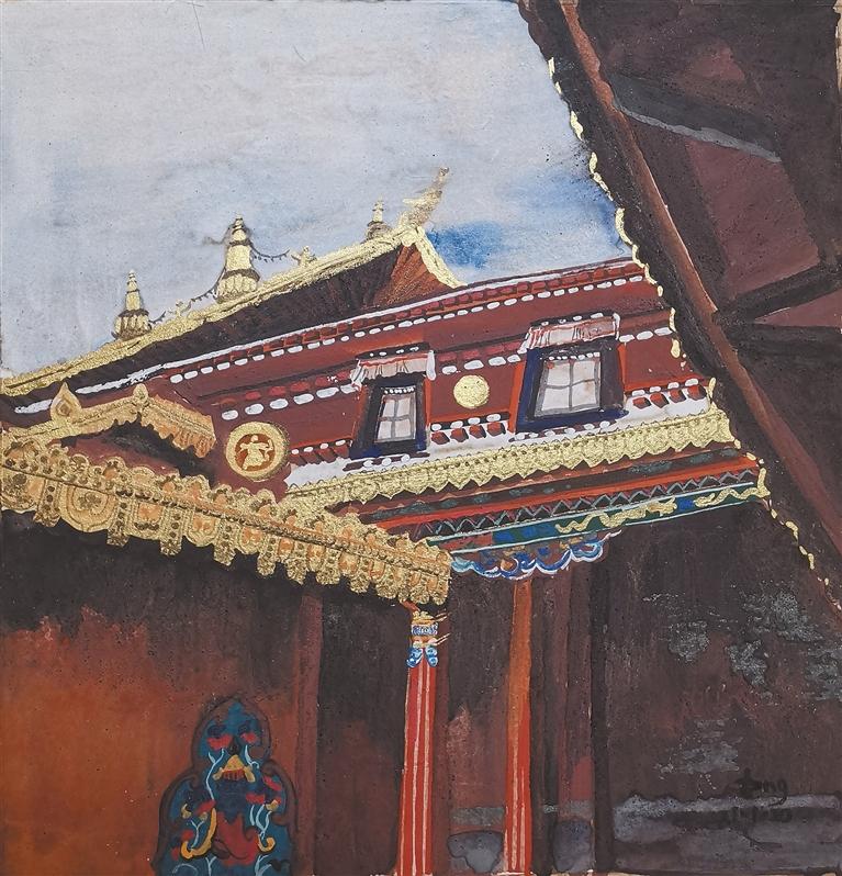 她畫筆下描繪的古城拉薩、朵朵白云、一草一木、民居建筑和人物形象都融入了對于藏文化的理解和對西藏美好生活的熱愛之情。她將這些景象都轉(zhuǎn)化為自己的藝術(shù)語言并賦予在了一層層傳統(tǒng)麻紙之上。在她的創(chuàng)作世界里,藝術(shù)是一場結(jié)合了研究的探索,是一場永不停歇的心靈對話,她希望一直能用自己的藝術(shù)語言堅持傳統(tǒng)繪畫方式,不斷摹古繼新。