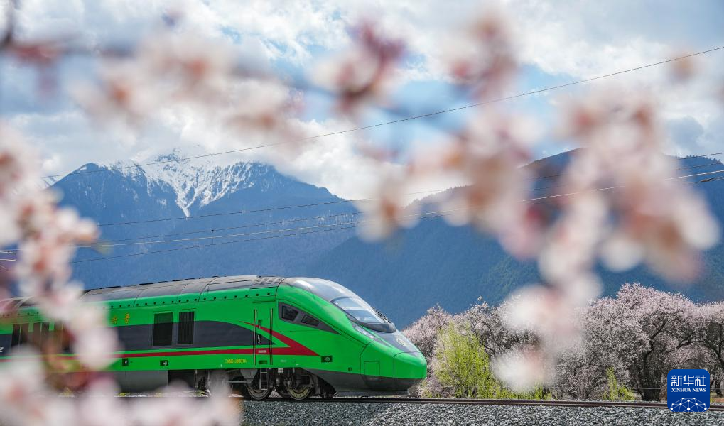 當(dāng)列車(chē)駛?cè)肓种ゾ硟?nèi),桃花的盛景會(huì)達(dá)到高潮,野生桃花漫山遍野。車(chē)在花中跑,人在畫(huà)中游,馳騁的復(fù)興號(hào)動(dòng)車(chē)與鐵道旁盛開(kāi)的桃花構(gòu)成了一幅人與自然和諧共生的畫(huà)卷。“第一次看到復(fù)興號(hào)從眼前飛馳而過(guò),就像看見(jiàn)家鄉(xiāng)的雄鷹掠過(guò)雪山。”林芝站安檢員德吉拉姆說(shuō)。