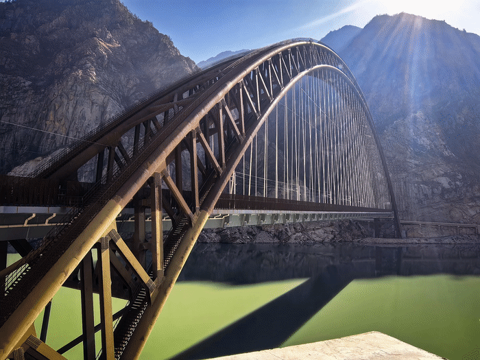 在山南段,列車(chē)會(huì)穿過(guò)藏木特大橋,這是目前世界海拔最高、跨度最大的鐵路鋼管混凝土拱橋,橋下江水如綢緞般在峽谷中流淌,兩岸峭壁巍峨聳立。