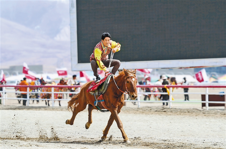 圖為開幕式上的馬術(shù)表演。記者 次仁平措 攝