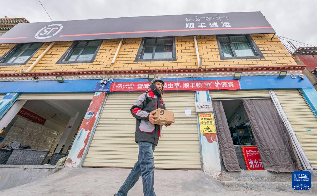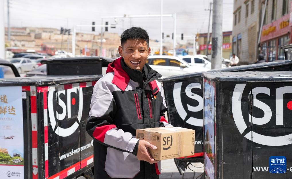 拉巴走出站點準(zhǔn)備去派件(4月24日攝)。新華社記者 丁增尼達 攝
