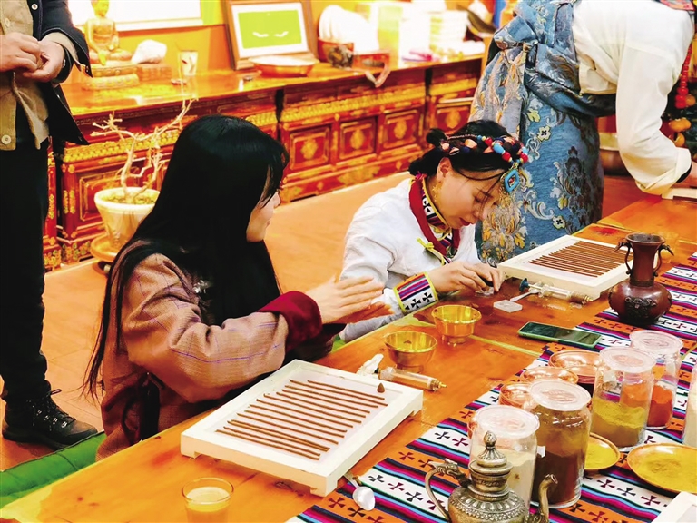 體驗制作藏香的游客。