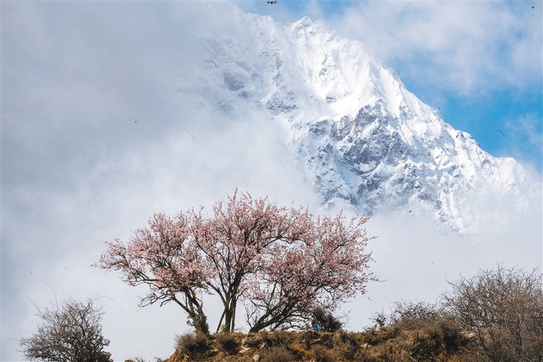 旅拍攝影師鐘小楊一直在西藏做婚禮跟拍工作。而這段時(shí)間,他在林芝為游客拍攝大峽谷中以桃花和南迦巴瓦峰為背景的賞花美照和結(jié)婚照。綿延山谷里的桃花灼灼盛放,粉白的花朵與湛藍(lán)的天空、巍峨的雪山相互映襯,構(gòu)成了一幅幅絕美的春日畫(huà)卷。這樣的美景不僅讓游客陶醉其中,也讓旅拍攝影師們忙碌不已。“這段時(shí)間拍花的游客特別多,我接到的訂單很多,大家都想在這美麗的花海中留下自己的身影,記錄下在西藏的美好時(shí)光?!辩娦钫f(shuō)。