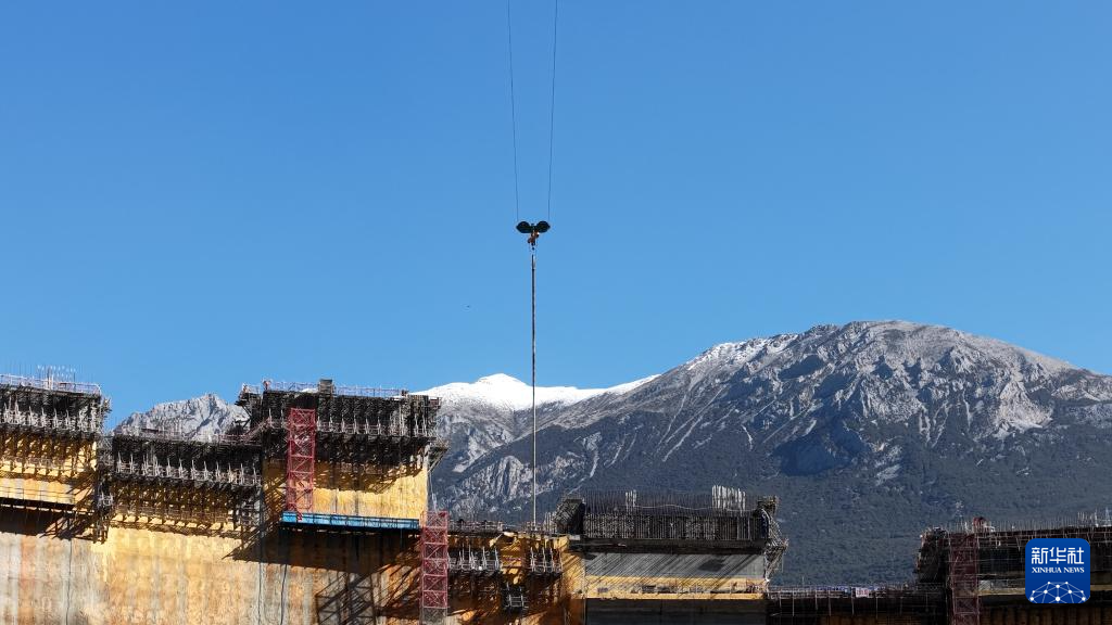 正在建設(shè)中的葉巴灘水電站混凝土雙曲拱壩。(受訪單位供圖)