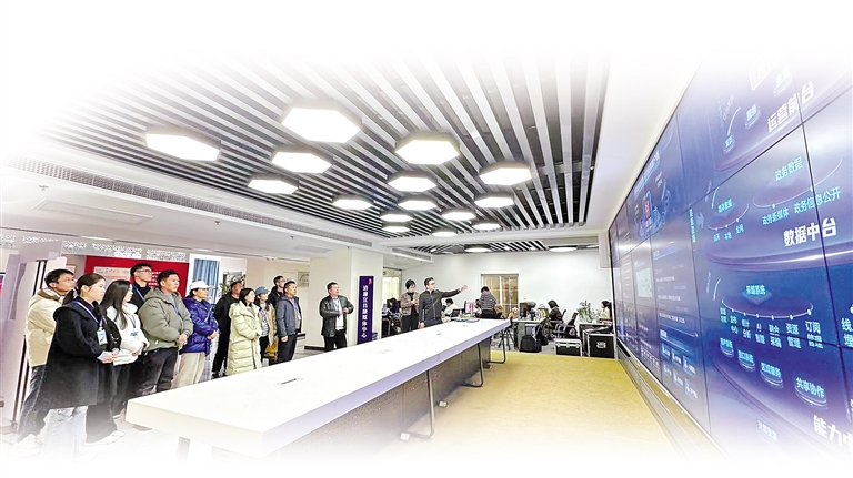 圖為瓊結(jié)縣宣傳思想文化系統(tǒng)“鄉(xiāng)村數(shù)字文化”考察組在湖北省宜昌市三峽融媒體中心參觀學(xué)習(xí)。 記者 次仁平措 本報(bào)通訊員 倫珠澤仁 攝