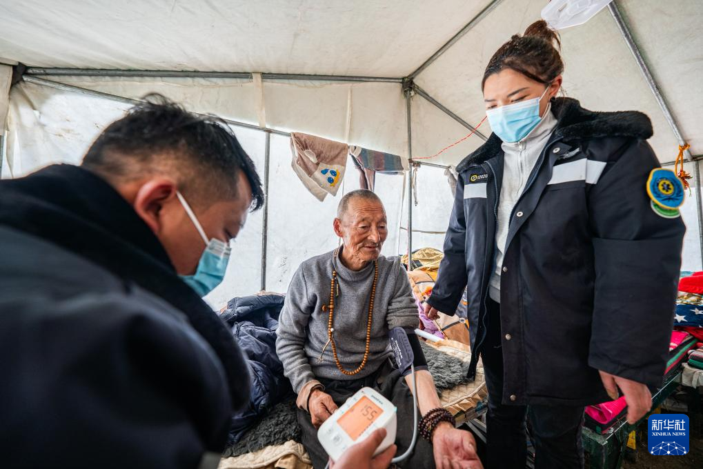 在那曲市索縣西昌鄉(xiāng),衛(wèi)生院醫(yī)務人員為蟲草采集點的牧民測量血壓(5月18日攝)。新華社記者 丁增尼達 攝