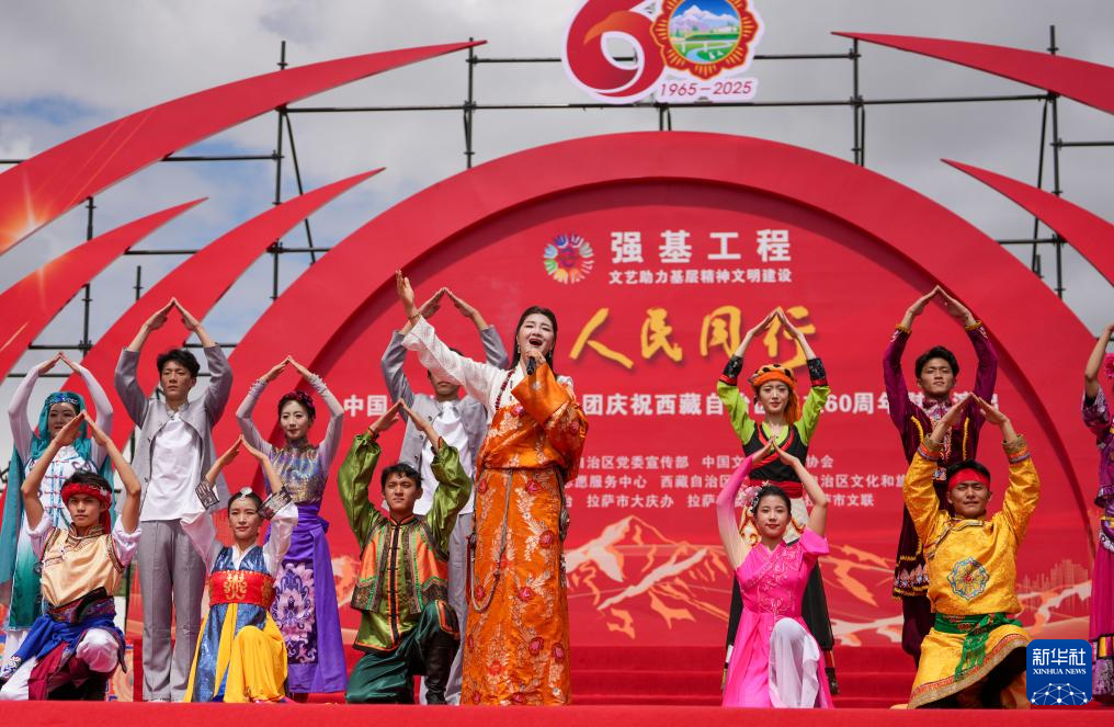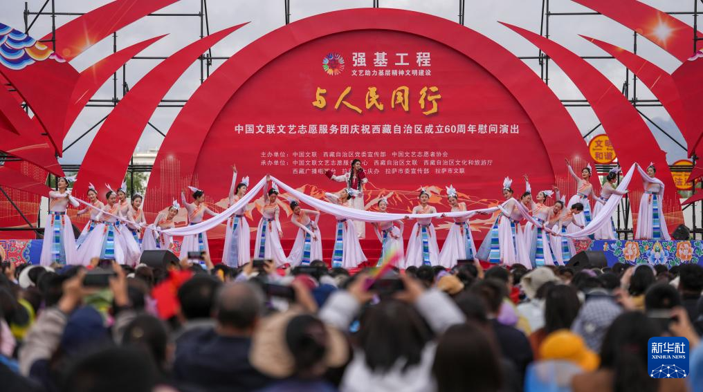 5月25日,由中國(guó)文聯(lián)、西藏自治區(qū)黨委宣傳部、中國(guó)文藝志愿者協(xié)會(huì)主辦的“與人民同行”中國(guó)文聯(lián)文藝志愿服務(wù)團(tuán)慶祝西藏自治區(qū)成立60周年慰問(wèn)演出在位于拉薩的西藏會(huì)展中心廣場(chǎng)舉行。