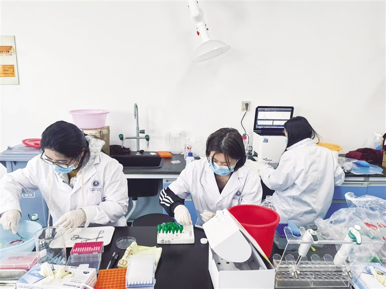 工作人員正在做3倍體檢測。圖由周建設提供