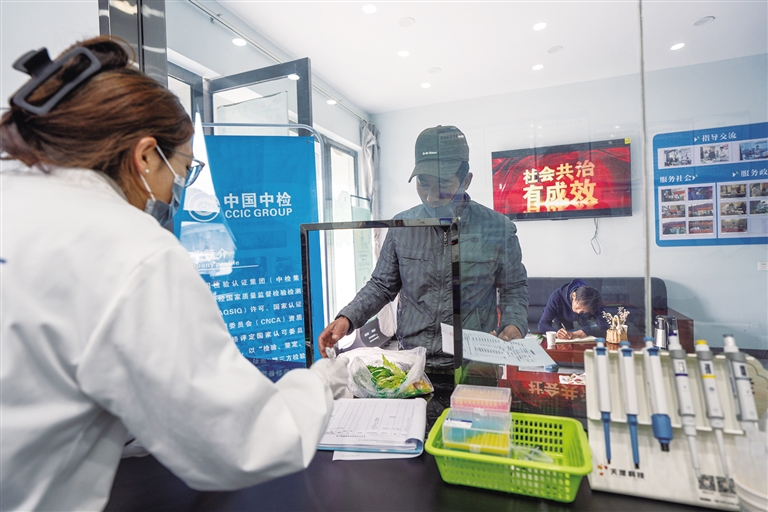 市民前來檢測站送檢驗(yàn)樣品。