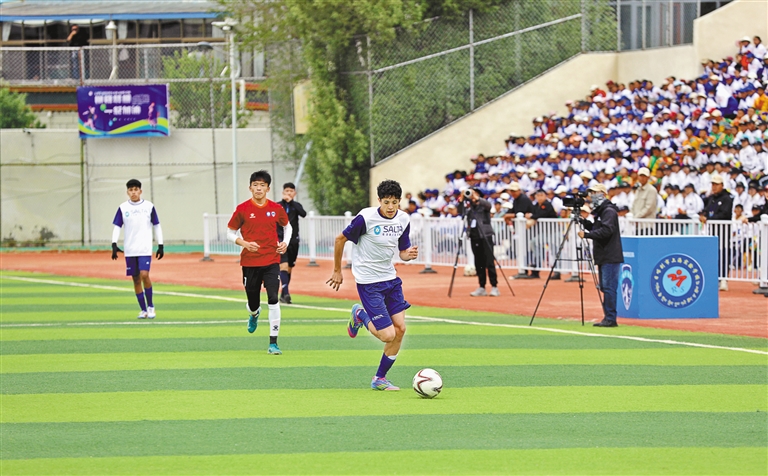 以球?yàn)槊?,“球”同存“誼”。5月20日下午,中國(guó)日喀則市珠峰雪鷹隊(duì)與阿根廷薩爾塔普納隊(duì)在日喀則市上海實(shí)驗(yàn)學(xué)校體育場(chǎng)上演了一場(chǎng)跨越山海的青少年足球友誼賽。賽場(chǎng)上,雙方球員迅速進(jìn)入狀態(tài),團(tuán)結(jié)配合、積極拼搶,用細(xì)膩的腳法,或急停、或變向、或假動(dòng)作,輕松晃過(guò)對(duì)手,射門得分,給觀眾呈現(xiàn)了一場(chǎng)精彩的足球比賽。