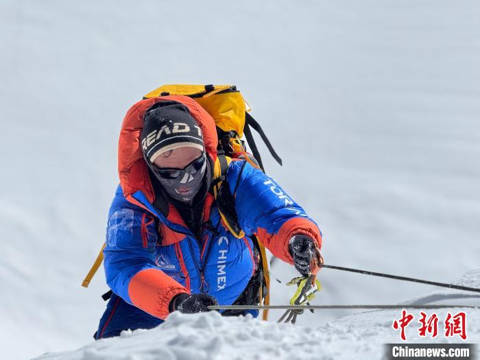 近日,登山團(tuán)隊成員攀登珠穆朗瑪峰。張馨苑供圖
