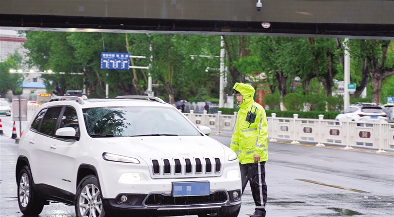 現(xiàn)場指揮送考生車輛。圖由拉薩交警提供