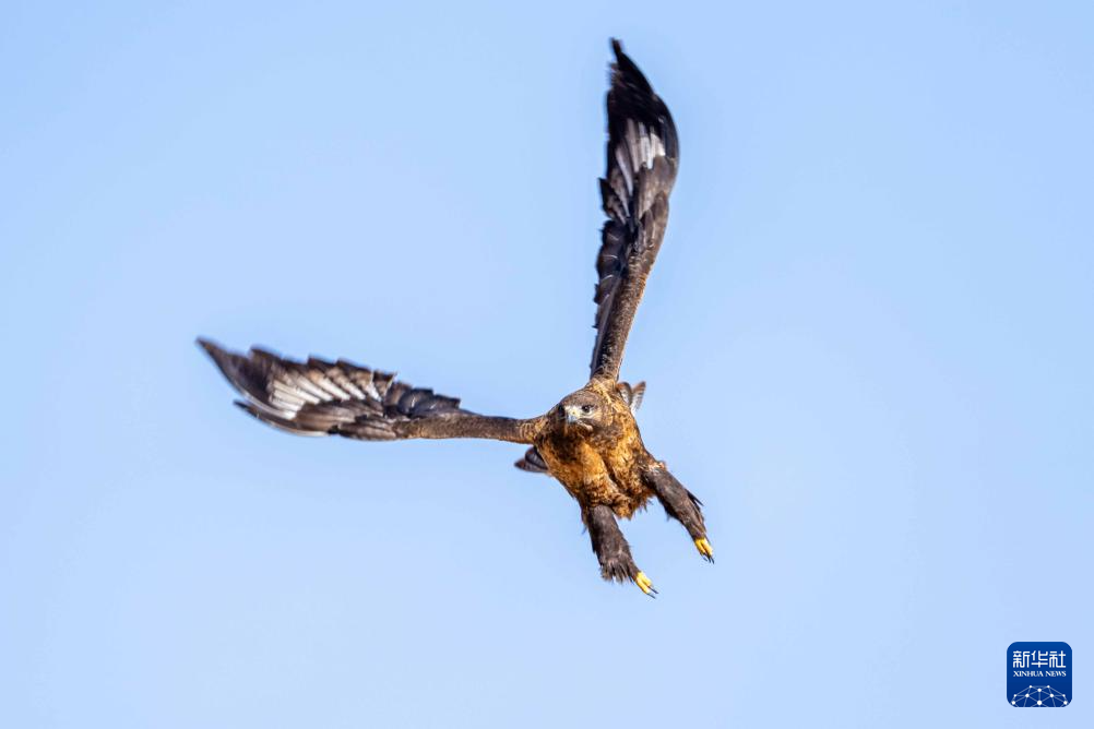 一只大鵟在羌塘草原展翅飛翔(6月8日攝)。新華社記者 劉金海 攝