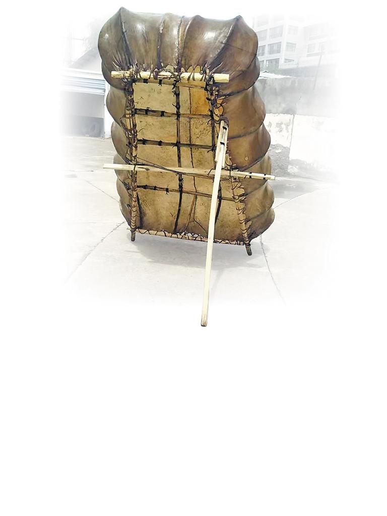 每次制作牛皮船前,手藝人先要將牛皮在水中浸泡處理,再將酥油或動物油脂等碾碎、涂抹,經(jīng)晾曬,牛皮呈現(xiàn)黃褐色,再對牛皮進行縫制,對針腳、線條、松緊都有一定的要求。次仁說:“所有材料備好后,在制船的最后一天,邀請村里經(jīng)驗最豐富的牛皮船技師來完成最重要的制船工序。而在之后的船只使用過程中,還要經(jīng)常性地用酥油等油脂對牛皮船進行保養(yǎng),防止牛皮破裂?!?/p>