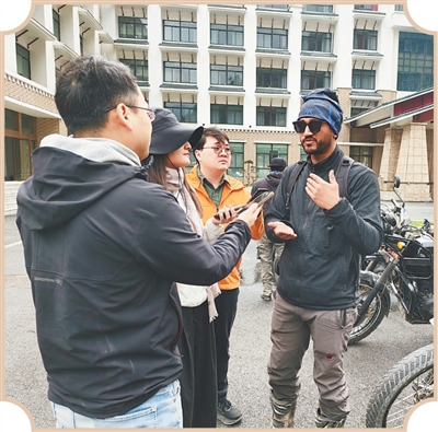 吉隆鎮(zhèn)上,記者偶遇一支由16輛摩托車、20余人組成的騎行車隊(duì)。領(lǐng)隊(duì)蘇詹·巴斯內(nèi)特來(lái)自加德滿都,此行他帶著16名澳大利亞游客,駕駛摩托車環(huán)行中尼兩國(guó)邊境地區(qū)?!坝?jì)劃行程11天,路程超過(guò)2500公里,將會(huì)途經(jīng)游客們最為期待的拉薩、珠穆朗瑪峰景區(qū)等地。”巴斯內(nèi)特說(shuō)。