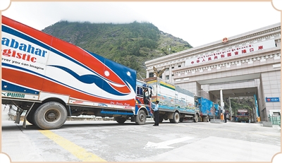 口岸兩側(cè),總能看到大貨車來(lái)來(lái)往往。貨車車身和駕駛室被司機(jī)精心裝扮,有的車廂上還掛著中尼兩國(guó)國(guó)旗,用彩色涂料寫(xiě)著“中尼友誼”“好兄弟”等字樣。