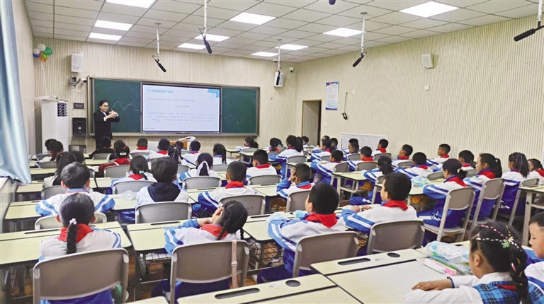 本次活動(dòng)以單課時(shí)科普課程為載體,聚焦“聲音是如何產(chǎn)生的”“聲音為什么會(huì)不同”“聲音是如何傳播的”“我們是如何聽(tīng)到聲音的”四大核心問(wèn)題,針對(duì)小學(xué)三至五年級(jí)學(xué)生不同的知識(shí)儲(chǔ)備,設(shè)計(jì)出“排簫音調(diào)實(shí)驗(yàn)”“鼓膜振動(dòng)模型”“八弦琴音色對(duì)比”“簡(jiǎn)易擴(kuò)音器制作”“真空罩聲音衰減”5個(gè)生動(dòng)有趣的科學(xué)實(shí)驗(yàn),分層實(shí)施教學(xué),激發(fā)了學(xué)生們探索科學(xué)的濃厚興趣。