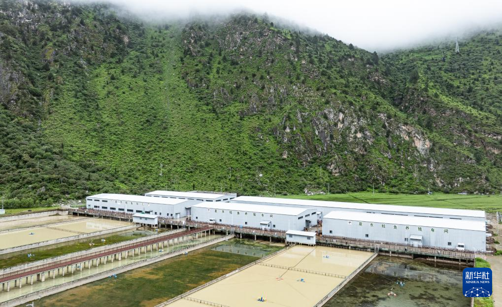 這是西藏高峰生態(tài)科技有限責任公司的亞東鮭魚養(yǎng)殖產業(yè)園(6月19日攝,無人機照片)。新華社記者 丁增尼達 攝