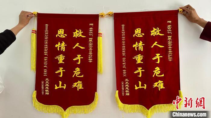 圖為寺內(nèi)僧人因救人收到的錦旗?!≈x牧 攝