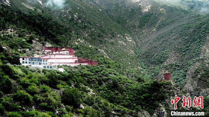 圖為位于西藏自治區(qū)桑日縣桑日鎮(zhèn)日崗村北側(cè)半山腰的丹薩梯寺。 謝牧 攝
