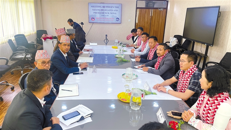 中國(guó)西藏代表團(tuán)拜訪尼泊爾新聞委員會(huì)。