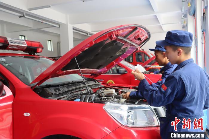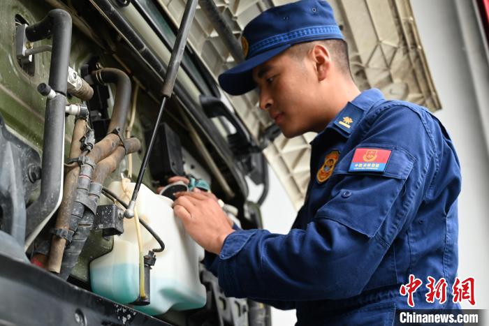 圖為消防員正在保養(yǎng)車輛。西藏林芝市森林消防支隊供圖
