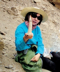 2012年札達盆地古麟化石出土時的場景,科考隊員舉著一個古麟的角。李強/攝