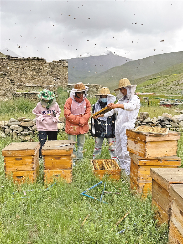 “蜂”產(chǎn)業(yè)激活鄉(xiāng)村振興“甜蜜動能”。走進(jìn)卡珠村的德康瓦蜜蜂養(yǎng)殖專業(yè)合作社養(yǎng)殖基地,一排排蜂箱整齊擺放,成群的蜜蜂穿梭在花叢間,振翅的嗡嗡聲交織成一曲熱鬧的豐收曲。負(fù)責(zé)人尼瑪桑旦,一位返鄉(xiāng)創(chuàng)業(yè)的95后大學(xué)生,正帶領(lǐng)員工們忙碌著:“我們創(chuàng)立了‘阿媽準(zhǔn)’藏蜜品牌,也在銷售風(fēng)干牛肉、人參果、蕁麻草等特色產(chǎn)品,通過電商平臺,我們的‘哲古味’已經(jīng)賣到了全國。去年銷售額突破了115萬元,還帶動了周邊10多戶群眾增收致富。”這間小小的加工坊,正是哲古鎮(zhèn)推動傳統(tǒng)產(chǎn)業(yè)與現(xiàn)代市場接軌的生動縮影。