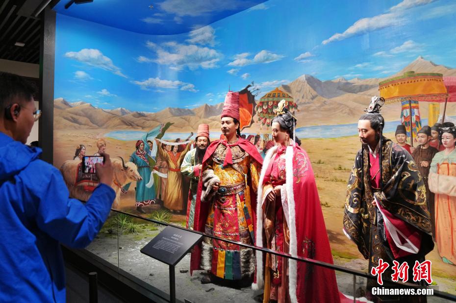 7月15日,在位于西藏拉薩的西藏博物館,文成公主進藏的《柏海迎親》塑像吸引觀眾。據(jù)了解,西藏博物館設(shè)有基本陳列《雪域長歌—西藏歷史文化展》《離太陽最近的人—西藏民俗文化展》,充分展示西藏地區(qū)歷史發(fā)展進程與文化面貌。中新社記者 張祥毅 攝