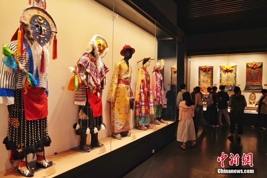 7月15日,在位于西藏拉薩的西藏博物館,藏戲服飾吸引觀眾。據(jù)了解,西藏博物館設(shè)有基本陳列《雪域長歌—西藏歷史文化展》《離太陽最近的人—西藏民俗文化展》,充分展示西藏地區(qū)歷史發(fā)展進程與文化面貌。中新社記者 張祥毅 攝