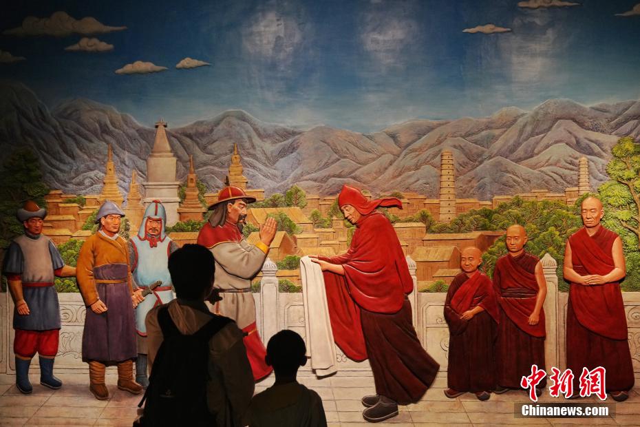 7月15日,在位于西藏拉薩的西藏博物館,觀眾參觀“涼州會談”場景,“涼州會談”結(jié)束了吐蕃地方政權(quán)對西藏的長期分治局面,順應(yīng)了國家統(tǒng)一的歷史潮流。據(jù)了解,西藏博物館設(shè)有基本陳列《雪域長歌—西藏歷史文化展》《離太陽最近的人—西藏民俗文化展》,充分展示西藏地區(qū)歷史發(fā)展進程與文化面貌。中新社記者 張祥毅 攝