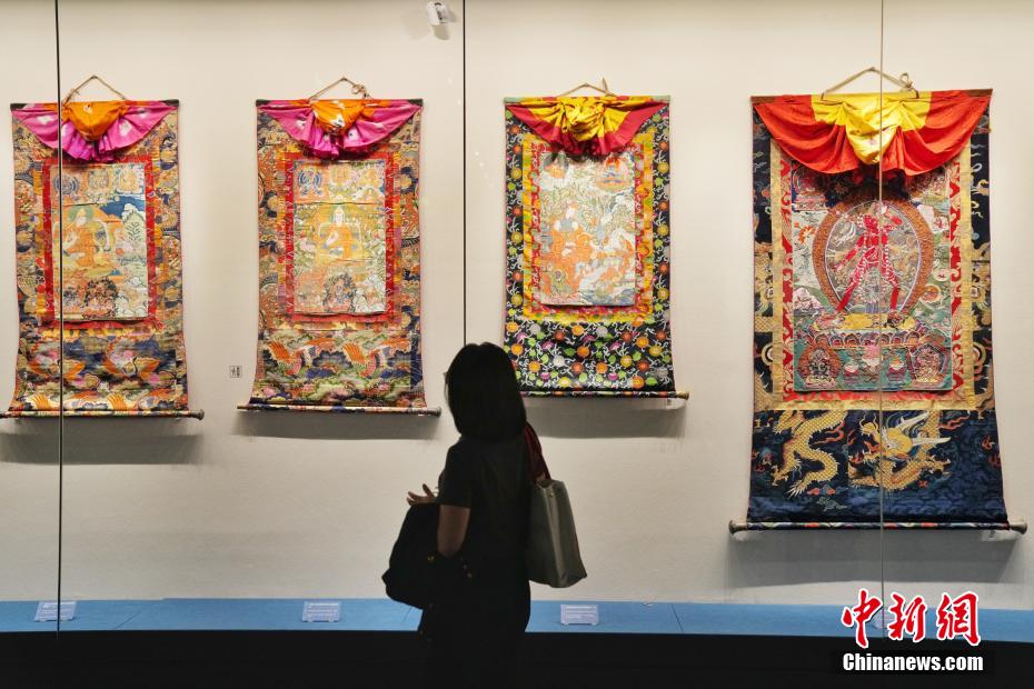 7月15日,在位于西藏拉薩的西藏博物館,觀眾品鑒唐卡藝術(shù)。據(jù)了解,西藏博物館設(shè)有基本陳列《雪域長歌—西藏歷史文化展》《離太陽最近的人—西藏民俗文化展》,充分展示西藏地區(qū)歷史發(fā)展進程與文化面貌。中新社記者 張祥毅 攝