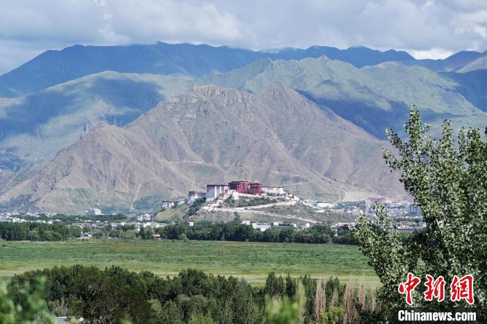7月16日,從西藏拉薩拉魯濕地遠眺布達拉宮和南山。張祥毅 攝