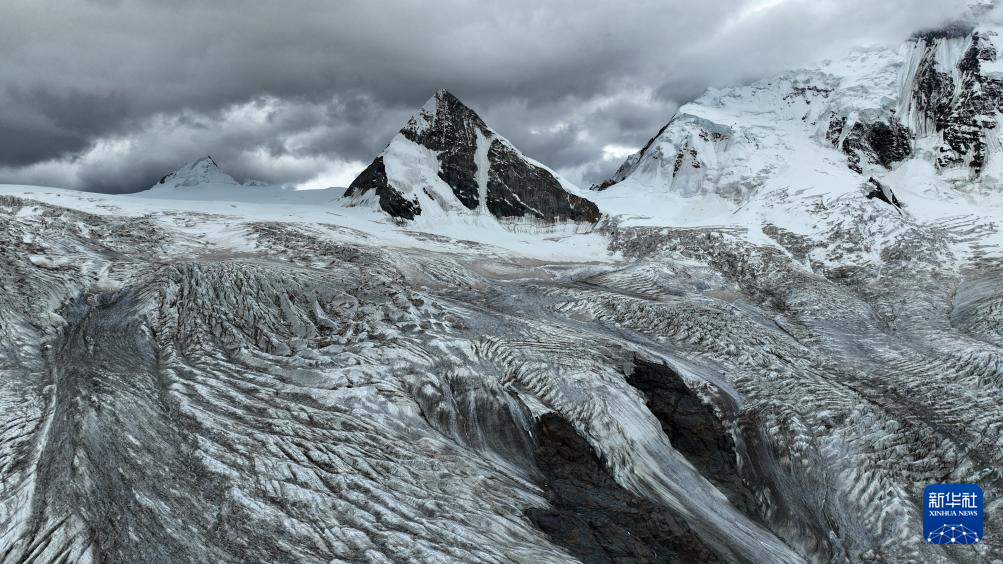 7月19日拍攝的薩普雪山及延伸的冰川(無人機照片)。新華社記者 晉美多吉 攝