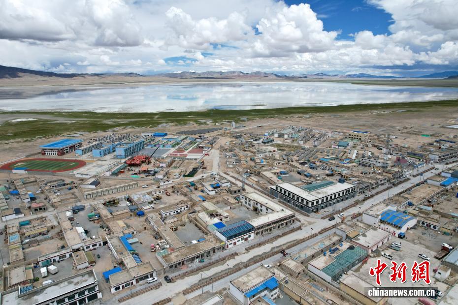 7月20日,在西藏阿里地區(qū)革吉縣拍攝的鹽湖鄉(xiāng),鹽湖鄉(xiāng)是“鹽羊古道”的重要節(jié)點之一。一千多年前,阿里地區(qū)有50多家駐扎的鹽幫,將自然鹽用羊馱牛背邊放牧邊運輸?shù)姆绞?,運送到普蘭、日喀則、印度、尼泊爾等地,并用以物易物的方式換回青稞、磚茶、布料等日常生活所需的物品,從而孕育了遠負盛名的“鹽羊古道”傳奇。近年來,當?shù)亻_辦粗鹽巴加工廠、打造“鹽羊古道”旅游品牌等方式,使千年“鹽羊古道”煥發(fā)新生機。(無人機照片)中新社記者 張祥毅 攝