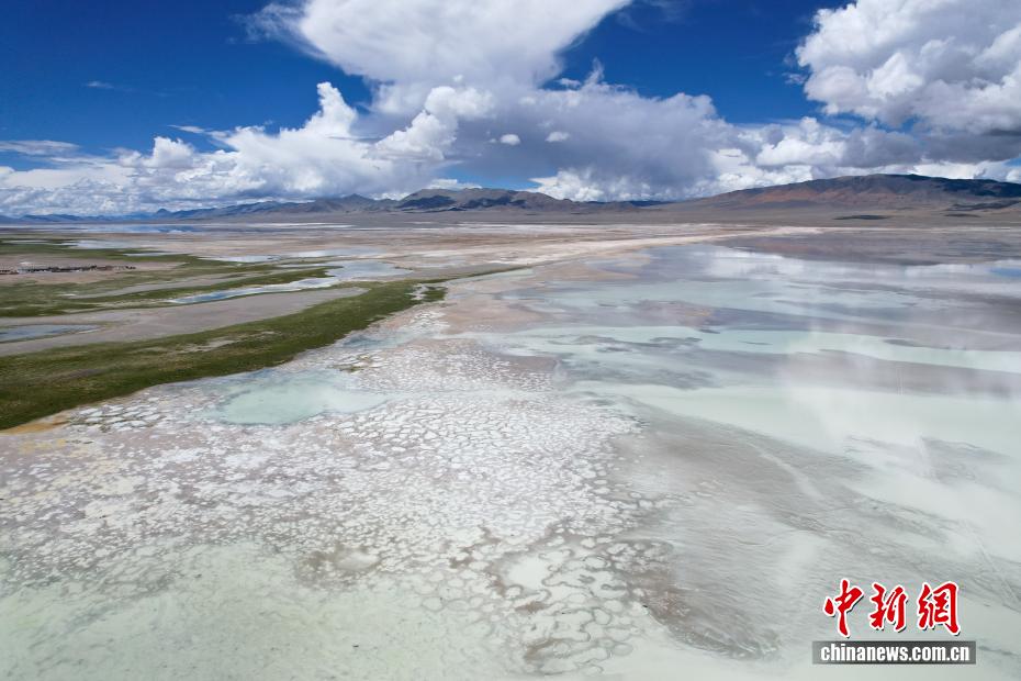 7月20日,航拍西藏阿里地區(qū)革吉縣鹽湖鄉(xiāng)境內(nèi)的鹽湖。一千多年前,阿里地區(qū)有50多家駐扎的鹽幫,將自然鹽用羊馱牛背邊放牧邊運輸?shù)姆绞?,運送到普蘭、日喀則、印度、尼泊爾等地,并用以物易物的方式換回青稞、磚茶、布料等日常生活所需的物品,從而孕育了遠負盛名的“鹽羊古道”傳奇。近年來,當?shù)亻_辦粗鹽巴加工廠、打造“鹽羊古道”旅游品牌等方式,使千年“鹽羊古道”煥發(fā)新生機。(無人機照片)中新社記者 張祥毅 攝