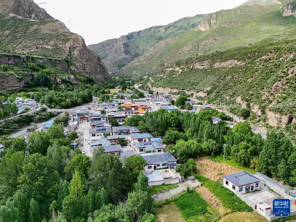 這是7月21日拍攝的西藏林芝市朗縣仲達(dá)鎮(zhèn)拉丁雪村(無人機(jī)照片)。新華社記者 李鑫 攝