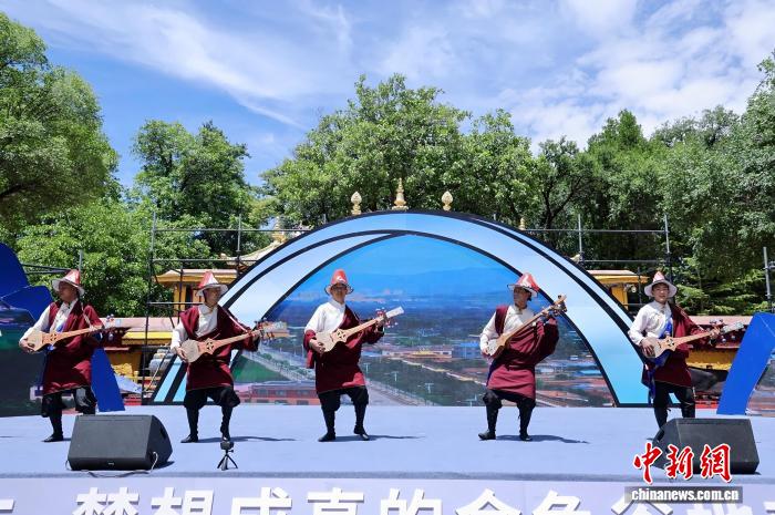 開幕式上,一場精彩的文藝演出率先點燃現場氣氛。來自青海的舞者們身著絢麗多彩的民族服飾,以優(yōu)美的舞姿展現出青海濃郁的民族風情;歌手們深情獻唱特色濃郁的民族歌曲,高亢嘹亮的嗓音回蕩在羅布林卡上空,令現場觀眾沉醉其中。