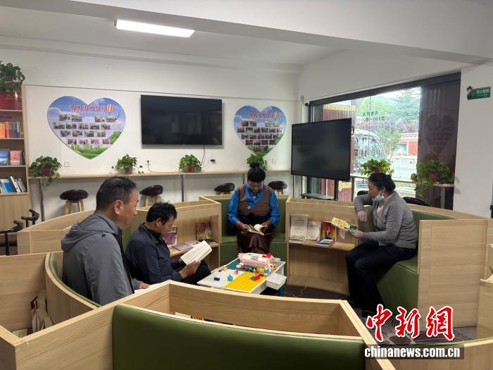 7月25日,拉薩市城關(guān)區(qū)魯固社區(qū)黨群服務(wù)V站內(nèi),當(dāng)?shù)鼐用裨陂喿x區(qū)看書(shū)。 中新網(wǎng)記者 張東方 攝