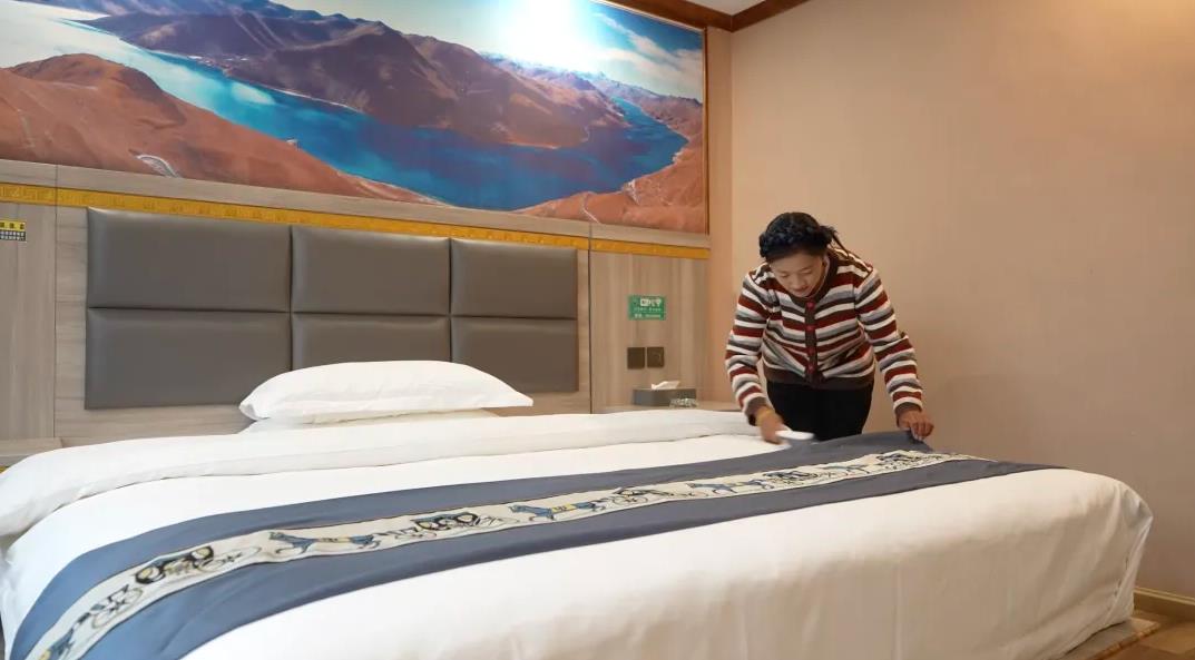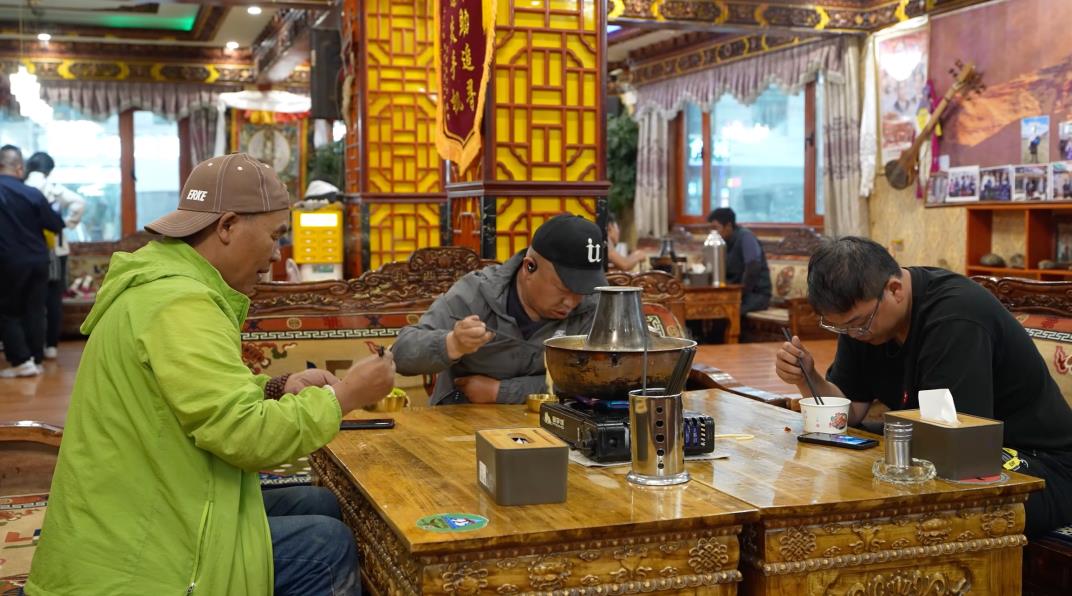“以前全家靠放牧和種青稞過活,風(fēng)里來雨里去,一年攢不下幾個(gè)錢。現(xiàn)在開了這家藏式餐館,游客多的時(shí)候一天能接待上百桌,收入很好?!痹谠髯诖褰?jīng)營(yíng)餐飲的次央說。