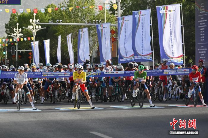 8月9日,2025中國(guó)西藏第六屆跨喜馬拉雅國(guó)際公路自行車(chē)極限賽拉薩賽段(第三賽段)完賽。本賽段為拉薩繞圈賽,起點(diǎn)拉薩市西藏博物館,終點(diǎn)布達(dá)拉宮廣場(chǎng),全程約92.53公里。圖為參賽車(chē)手在比賽中。中新社記者 貢嘎來(lái)松 攝