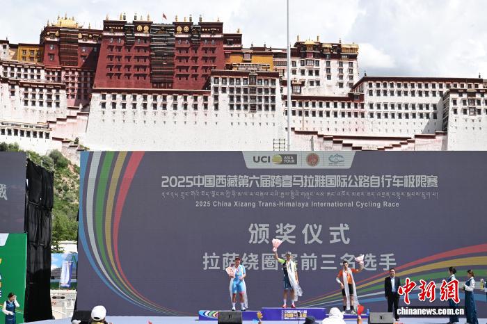 8月9日,2025中國(guó)西藏第六屆跨喜馬拉雅國(guó)際公路自行車(chē)極限賽拉薩賽段(第三賽段)完賽。本賽段為拉薩繞圈賽,起點(diǎn)拉薩市西藏博物館,終點(diǎn)布達(dá)拉宮廣場(chǎng),全程約92.53公里。比賽吸引了來(lái)自中國(guó)、西班牙、哈薩克斯坦等20余支車(chē)隊(duì)。圖為斯優(yōu)泰-梵蒂尼職業(yè)隊(duì) RAJOVIC Dusan(中)、快客洲際隊(duì) LAAS Martin(左)、巴斯克電信職業(yè)隊(duì) ABERASTURI IZAGA Jon(右)分別獲得本賽段第一、二、三名。中新社記者 貢嘎來(lái)松 攝