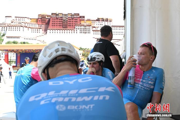 圖為完賽后參賽車(chē)手在布達(dá)拉宮廣場(chǎng)吸氧休息。中新社記者 貢嘎來(lái)松 攝