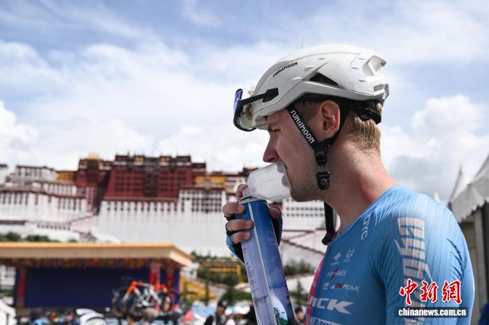 圖為完賽后參賽車(chē)手在布達(dá)拉宮廣場(chǎng)吸氧。中新社記者 貢嘎來(lái)松 攝