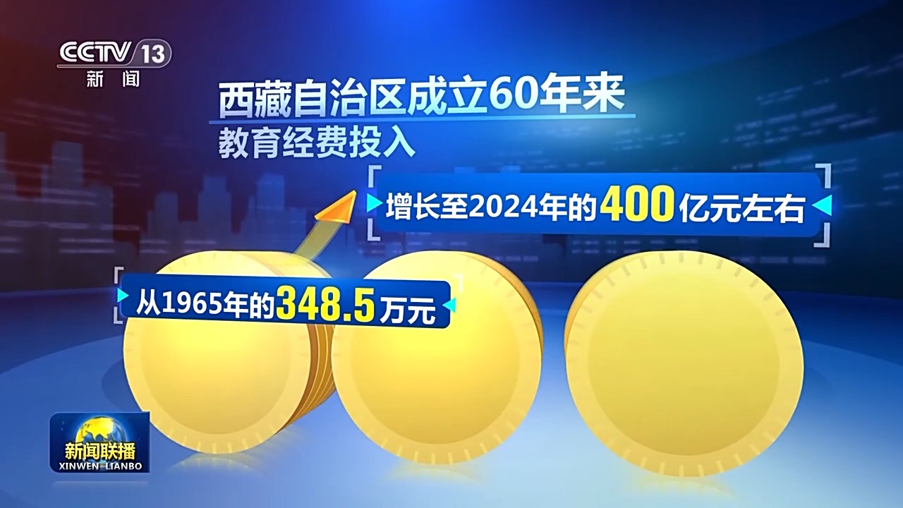 西藏自治區(qū)成立60年來(lái),教育經(jīng)費(fèi)投入從1965年的348.5萬(wàn)元增長(zhǎng)至2024年的400億元左右。從2012年開始,西藏在全國(guó)率先建立從學(xué)前到高中的15年公費(fèi)教育體系。如今的西藏,已建成涵蓋學(xué)前教育、基礎(chǔ)教育、職業(yè)教育、高等教育等完整的現(xiàn)代教育體系。從文盲率高達(dá)95%以上,到如今的新增勞動(dòng)力平均受教育年限達(dá)13.1年,西藏教育實(shí)現(xiàn)了“歷史性跨越”。